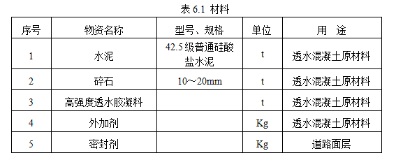 高強度透水混凝土自行車道使用材料應(yīng)根據(jù)我國現(xiàn)有材料和設(shè)計的要求選用,主要選用材料見表6.1。