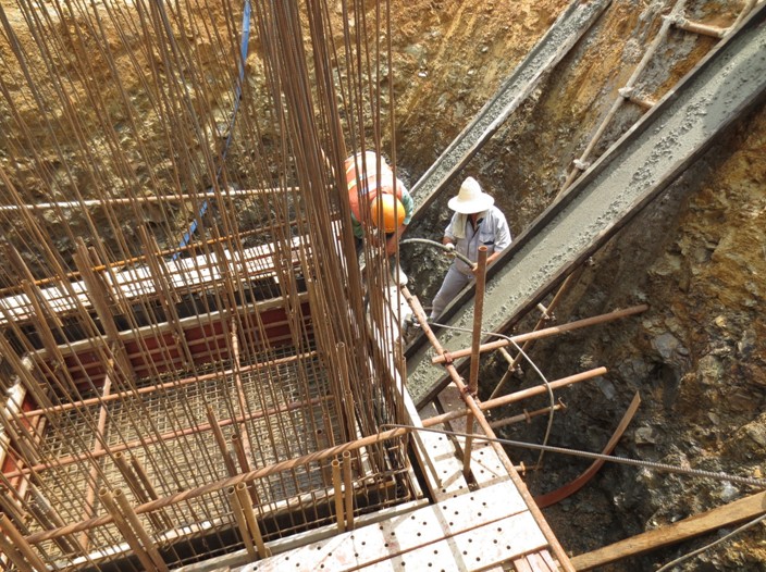 11月份正值赤道幾內(nèi)亞全年第二個雨季,頻繁降雨致使項目施工連續(xù)性得不到保障。為確保施工進(jìn)度,項目部合理調(diào)整資源配置,精心編制施工計劃,及時調(diào)整人、機、料資源的部署和各工種、工序之間的合理有效銜接,全力保障雨季施工計劃。