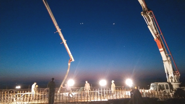 經(jīng)過(guò)16個(gè)小時(shí)的連續(xù)施工,隨著最后一方混凝土泵送入模,終于在28日凌晨4時(shí)40分完成全部混凝土澆筑工作。眼看著又一個(gè)工程逐漸成型,項(xiàng)目部管理人員疲憊的臉龐上露出了舒心和笑意,回顧過(guò)去的兩年時(shí)光,從工程進(jìn)場(chǎng)直到今夜,歷經(jīng)寒冬,走過(guò)酷暑,同事們?nèi)蝿谌卧?/span>通宵達(dá)旦看成家常便飯,當(dāng)頭烈日加班加點(diǎn)更是習(xí)以為常。這里留下了他們數(shù)不清的汗水,烙下了他們無(wú)數(shù)個(gè)日夜穿梭的腳印,而今天悄然矗立起的這座橫貫?zāi)媳钡?/span>現(xiàn)代化大橋是對(duì)他們付出的最好回報(bào)。