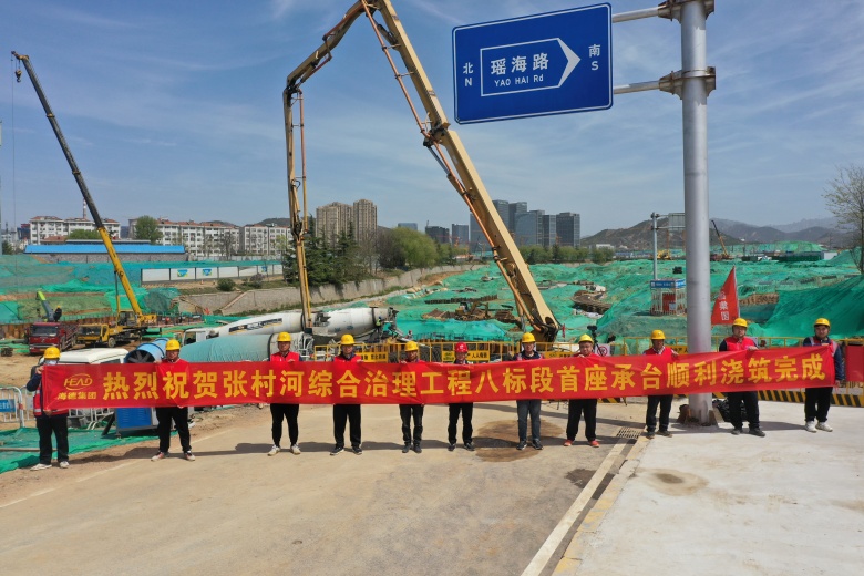 4月17日上午9點58分,集團承建的科技園五路橋工程(青島市張村河綜合治理工程八標段)首座承臺順利澆筑。
