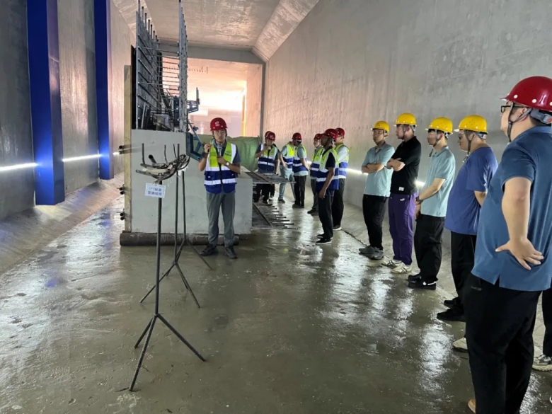 在觀摩現(xiàn)場,項目總工葛帥就明挖區(qū)間一期圍護結構到主體結構施工過程中的精細化管控亮點、施工過程中班組建設、世界一流地鐵建設質量精細化管理、橋隧共建課題研究介紹及階段性成果進行了詳細的介紹和講解。與會人員對基坑開挖、灌注樁網噴混凝土、高壓旋噴樁、冠梁、擋墻、地下連續(xù)墻、錨索、結構防水質量精細化管控以及實體樣板、班組建設情況進行了現(xiàn)場觀摩和經驗交流,紛紛表示此次觀摩交流不僅感受到了精細化管理對提升工程品質的顯著優(yōu)勢,更學習到了新材料、新技術、新工藝應用的寶貴經驗,后續(xù)將以本次觀摩為契機,學習借鑒精細化管理經驗,助力工程現(xiàn)場質量精細化管理水平提升。