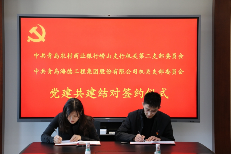 20251120日上午,中共******青島海德工程集團(tuán)股份有限公司機(jī)關(guān)支部委員會與******青島農(nóng)村商業(yè)銀行嶗山支行機(jī)關(guān)第二支部委員會在集團(tuán)會議室成功舉行黨建共建簽約儀式。集團(tuán)公司黨總支部委員、常務(wù)副總裁白正海,集團(tuán)機(jī)關(guān)支部委員、總裁助理孟,集團(tuán)總裁助理、財(cái)務(wù)投資部總經(jīng)理戶國昌出席儀式。